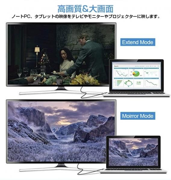 【高画質&大画面】ノートPC タブレットの映像をテレビやモニターやプロジェクターに映し、大画面でかつ高画質で画像や動画を楽しめます。