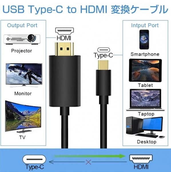 USB Type-C to HDMI 変換ケーブル 1.8m usb type-c to hdmi 変換アダプター 4K解像度対応 軽量 設定不要