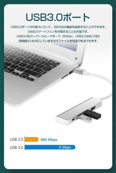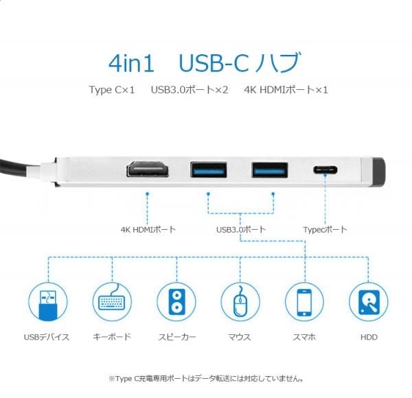USB-C ハブ 多機能 4-in-1 Type-C 高速 メディア ハブ 4K対応 HDMIポート / USB 3.0 ポート 280448