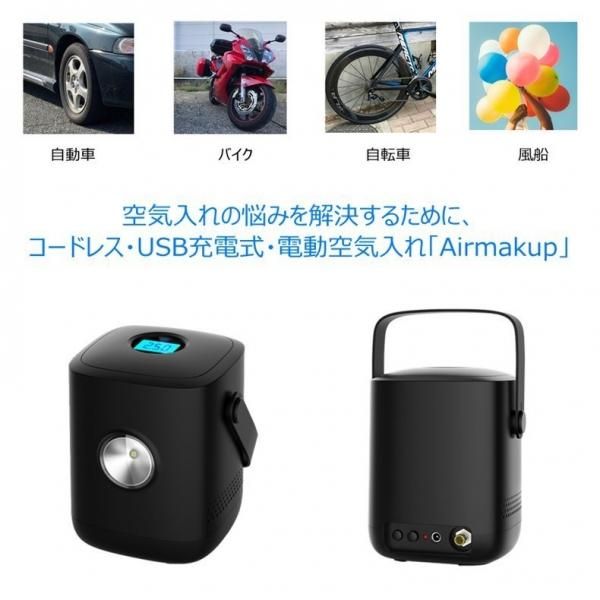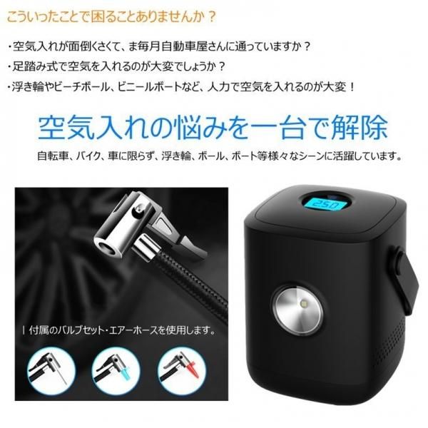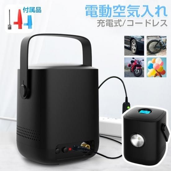 電動空気入れ 自転車 コードレス 車用 充電式 屋外 コンパクト 電動エアーポンプ 携帯 エアコンプレッサー 280443
