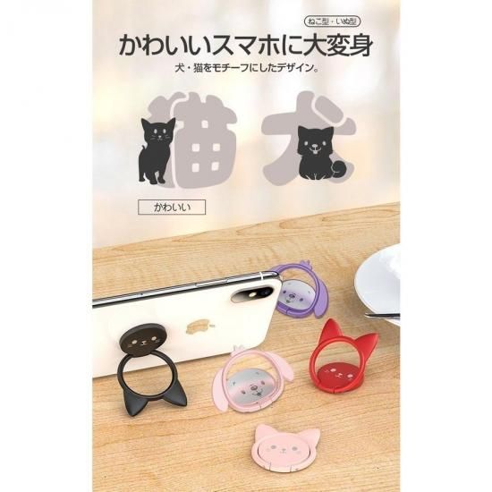 スマホリング おしゃれ かわいい スマホスタンド ネコ ねこ 犬 いぬ 角度調整 落下防止 スマートフォン 車載 ホルダー リング iPhone android ipad 全機種対応 280214-280224