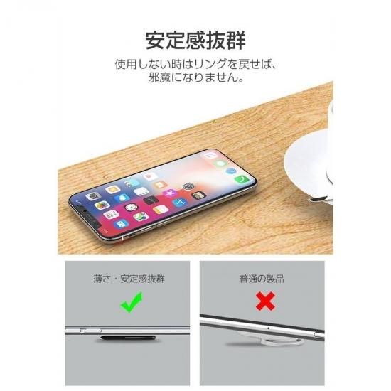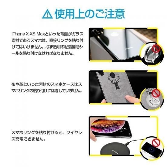 ※スマホ本体、あるいはスマホケースの表面はすべすべな材質でしたら、リングを貼って、直ちに使わないで、1時間ぐらい待ったほうがいいです。そうしたらちゃんと貼り付けられます。