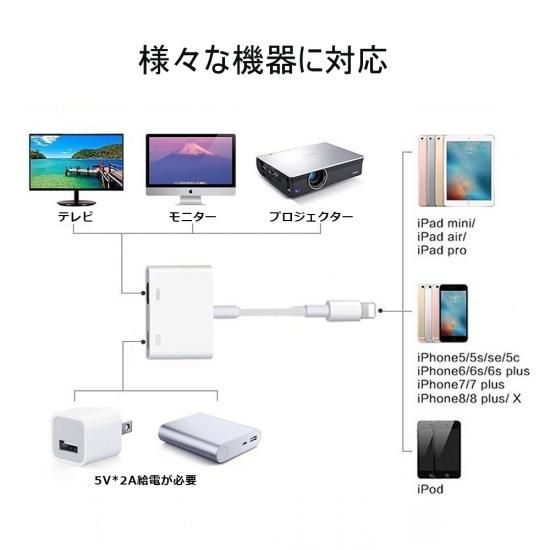 変換アダプタを通じて、iphone /ipad/ ipodの中の写真や映像などをテレビやプロジェクターの大画面に映し出します。