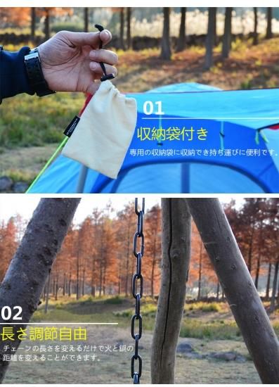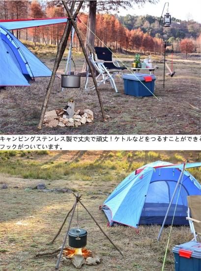 *完璧なキャンプ用品。鋳鉄製のダッチオーブン、ティーポット、コーヒーポットなどを調理器具に掛けることができます。また、提灯の吊り下げ、やかんの吊り下げ、衣類の乾燥などの目的にも適しています。
