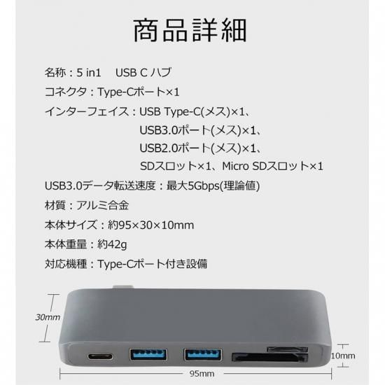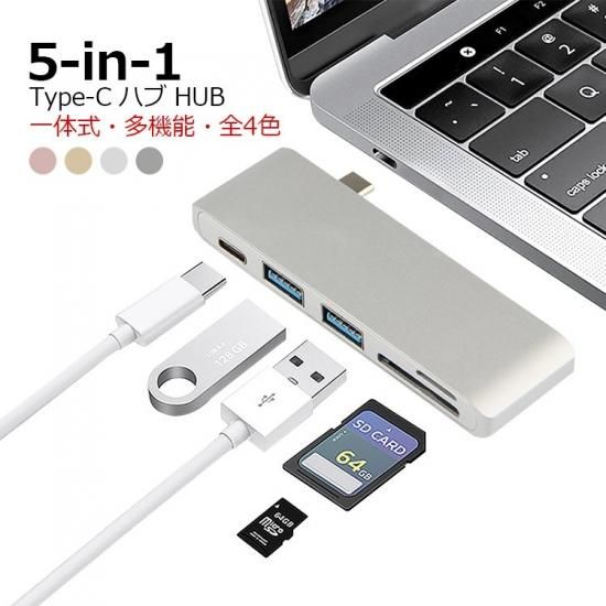 5in1 Type-c usb ハブ USBハブ Type-C usbハブ 3.0 2.0 ハブ USB-C ハブ 充電ポート 5in1タイプc 変換アダプター SDカードリーダー アルミ合金 280101-280104
