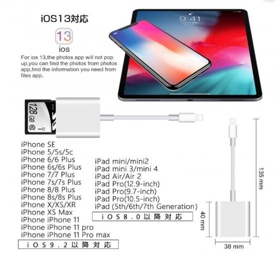 iPhone SDカードリーダー iPhone iPad iOS専用 TF/SDカードリーダー TFカードカメラリーダー Micro SDカード SDカードライター SDカード 写真 画像 280274