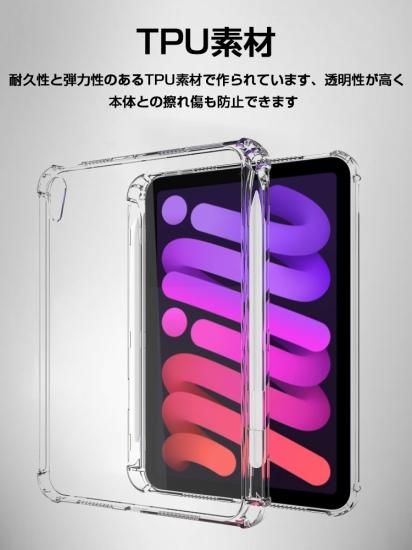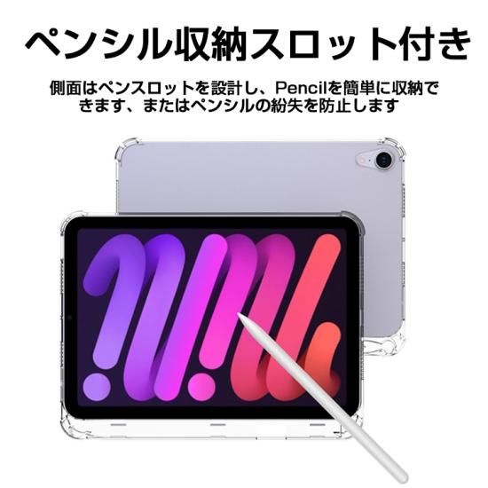 iPad mini6 ケース ペン 収納 iPad mini 6 カバー 2021 第6世代 ケース クリア TPU 透明 保護ケース ペンシル収納 薄型 軽量 衝撃吸収 着脱簡単 260059
