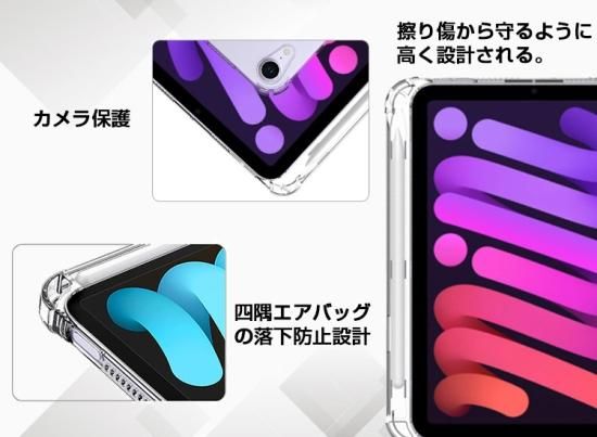四隅エアバッグの落下防止設計 、衝撃から端末iPad Mini6をしっかり保護します。擦り傷から守るように高く設計される。落下に対する保護が強化されています。