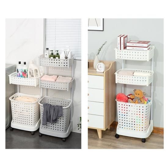 ランドリーバスケット ランドリーラック 3段 キャスター付 収納 ランドリーワゴン 縦型 洗濯カゴ バスケットワゴン 洗濯ラック 131014-131015
