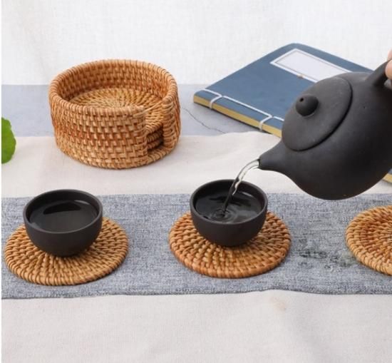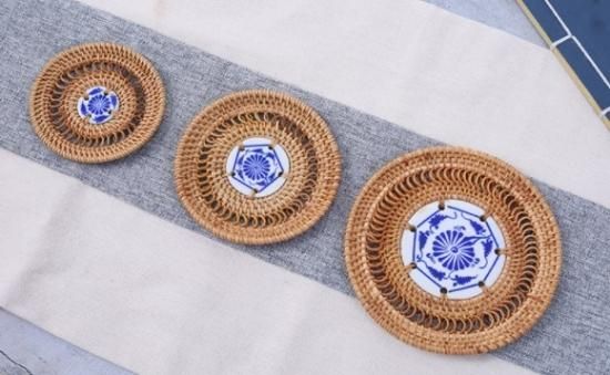 アタで編まれた 丸型 コースター 円形 丸いコースター トレイ トレー モダン 131076